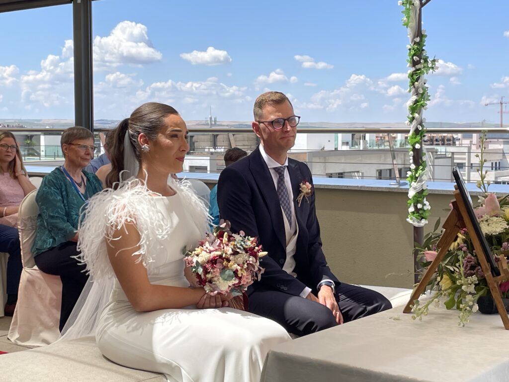Si vuestra boda reúne invitados de distintas nacionalidades, este oficiante de bodas bilingüe ofrece una narración fluida y equilibrada en español e inglés, para que todos vivan la magia del momento sin perder detalle. Perfecto para bodas internacionales en Andalucía.